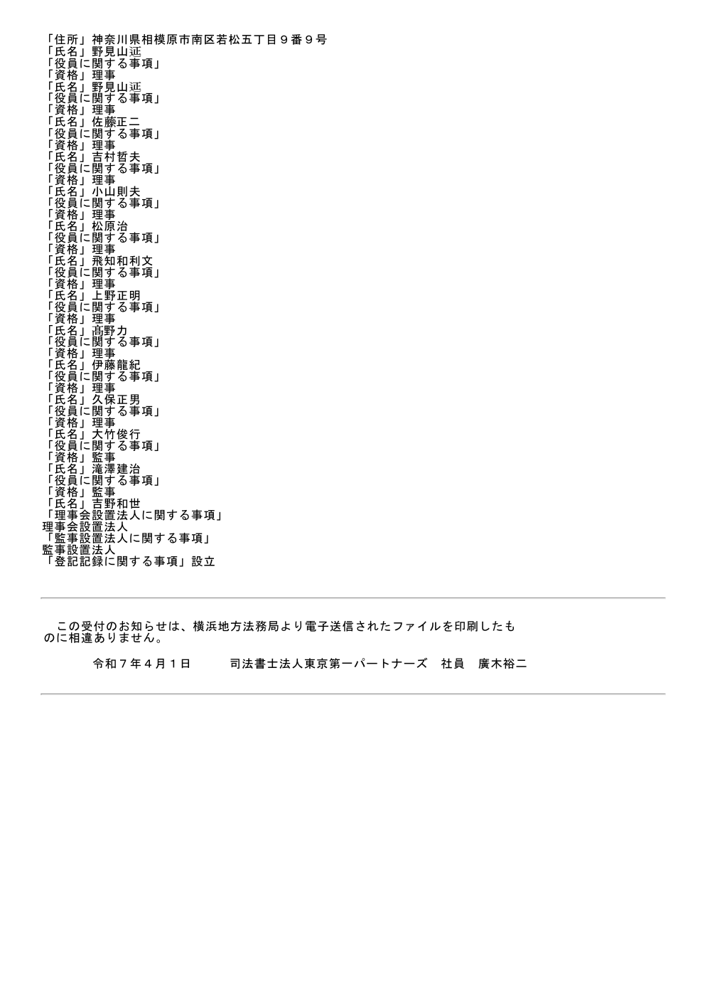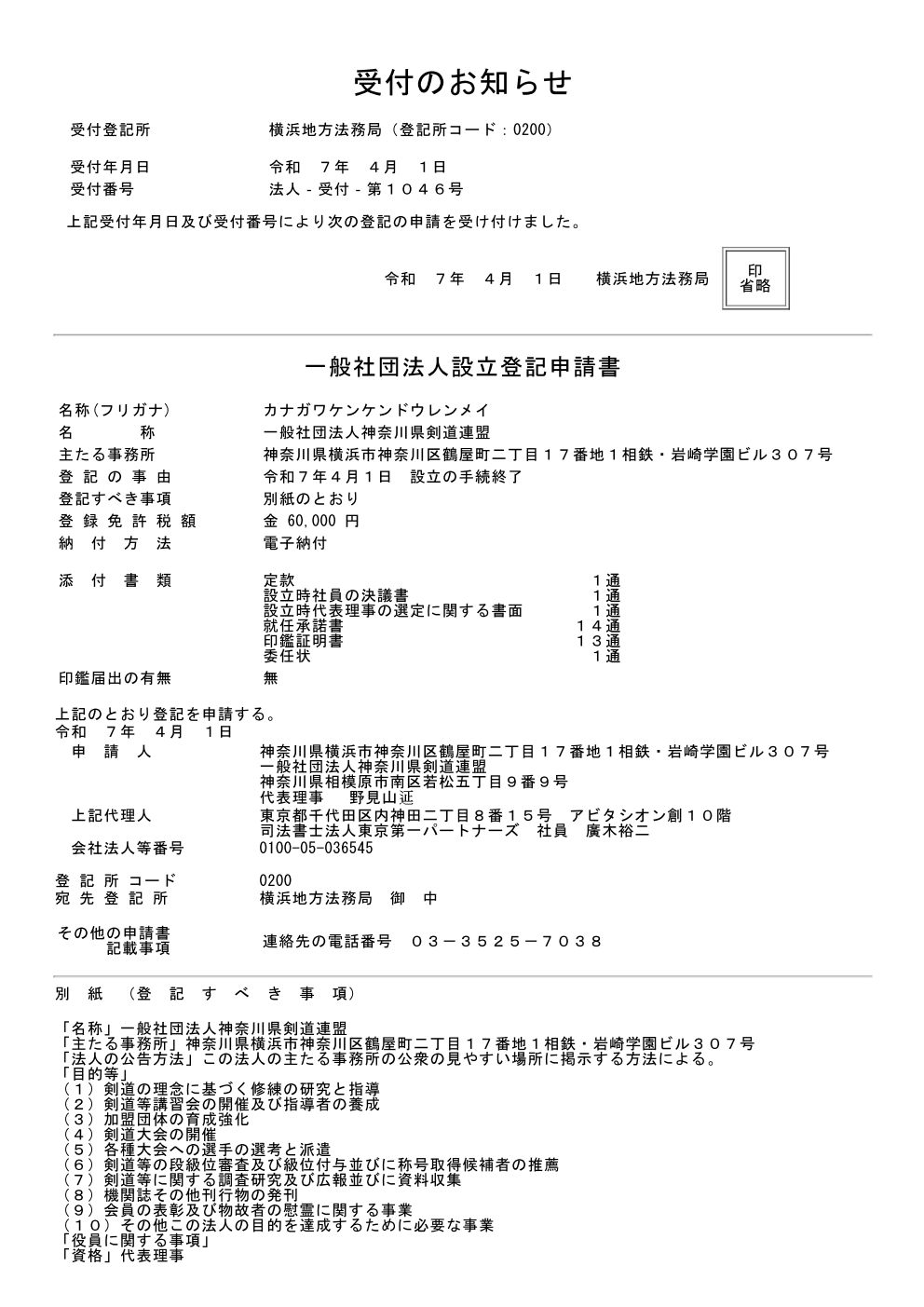 本日、一般社団法人として正式に確定いたしました。 代表理事 野見山すすむ