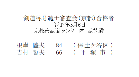 【合格者】剣道称号範士審査会 京都 (R7.5.6)