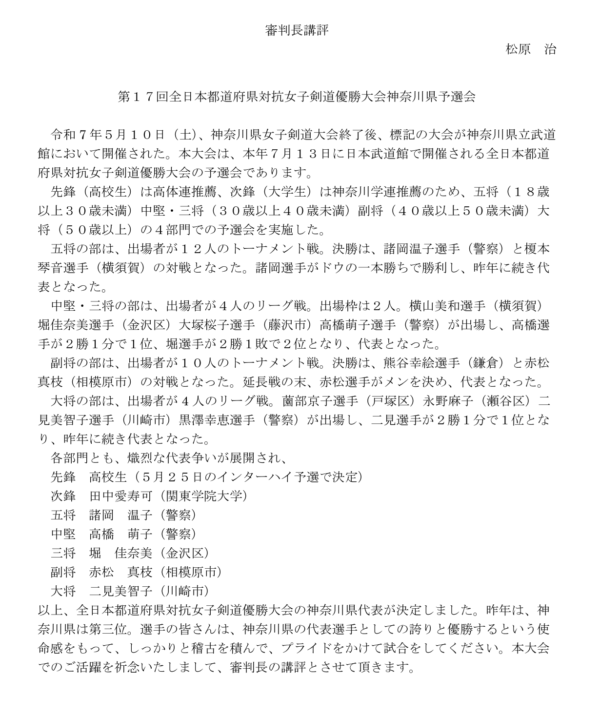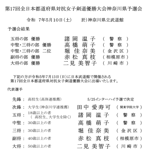 【結果】第17回 神奈川県女子剣道大会 2025.5.10