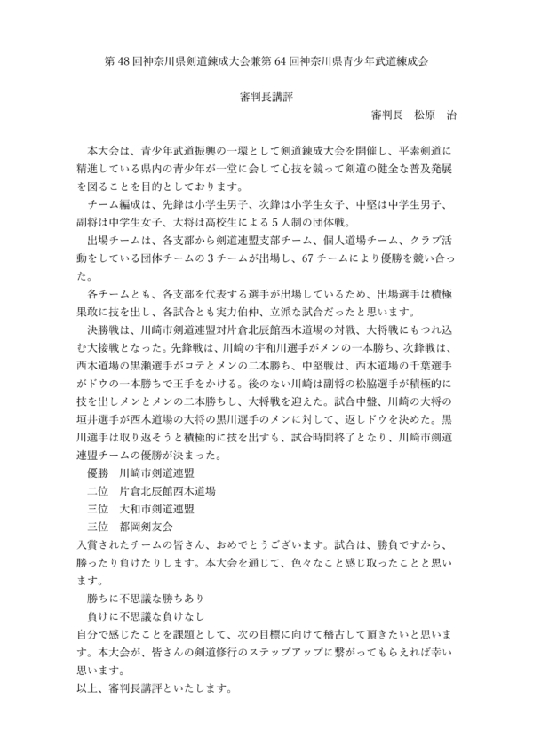 【結果】第48回 神奈川県錬成大会