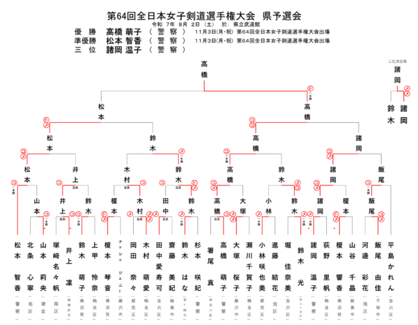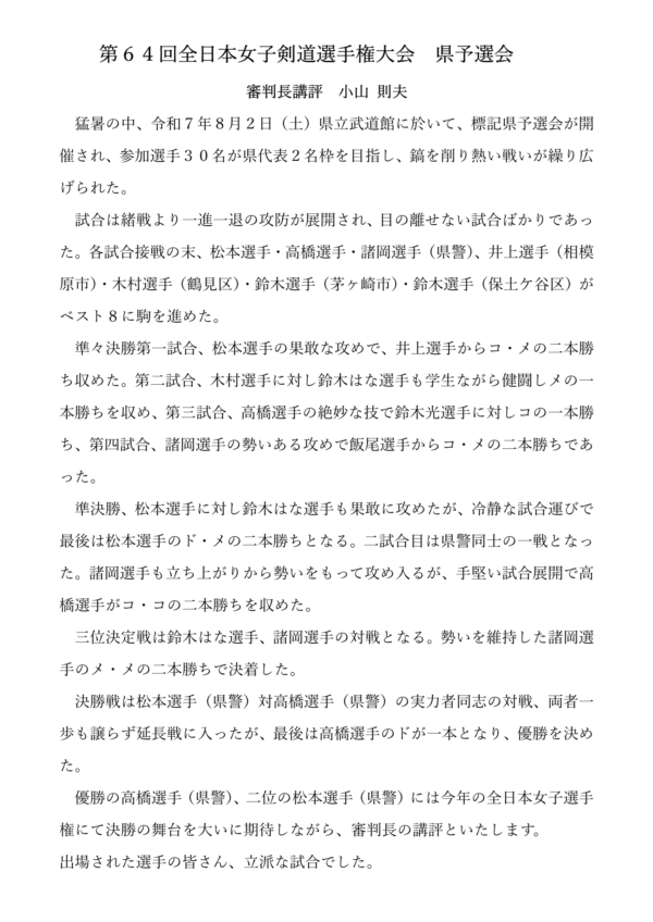 令和7年8月2日(土)に第64回全日本女子剣道選手権大会県予選会が開催されました。