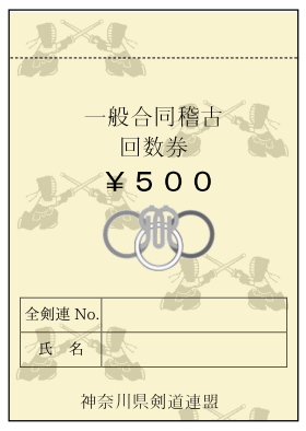 剣道一般・女子合同稽古会への参加は有料(1回500円)です。参加料は回数券(または現金)での支払いとなります。 回数券(12枚綴りで5,000円)の販売は合同稽古会の受付で行います。