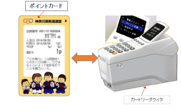 会場に設置した専用機械(カードリーダライタ)にカードを通すだけの簡単操作です。