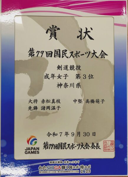 滋賀県湖南市総合体育館で行われた国民スポーツ大会。今年度は、少年女子、少年男子、成年女子、成年男子すべてが出場しました。成年男子はベスト8、成年女子は見事3位入賞を果たしました。男女総合でも8位となる成績を残しました。