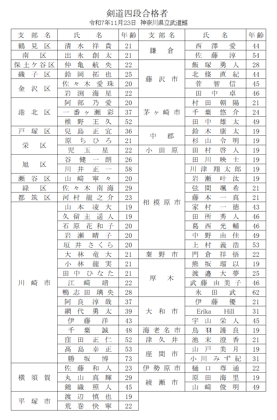 5. 【合格者】剣道四段審査  (R7/11/23)