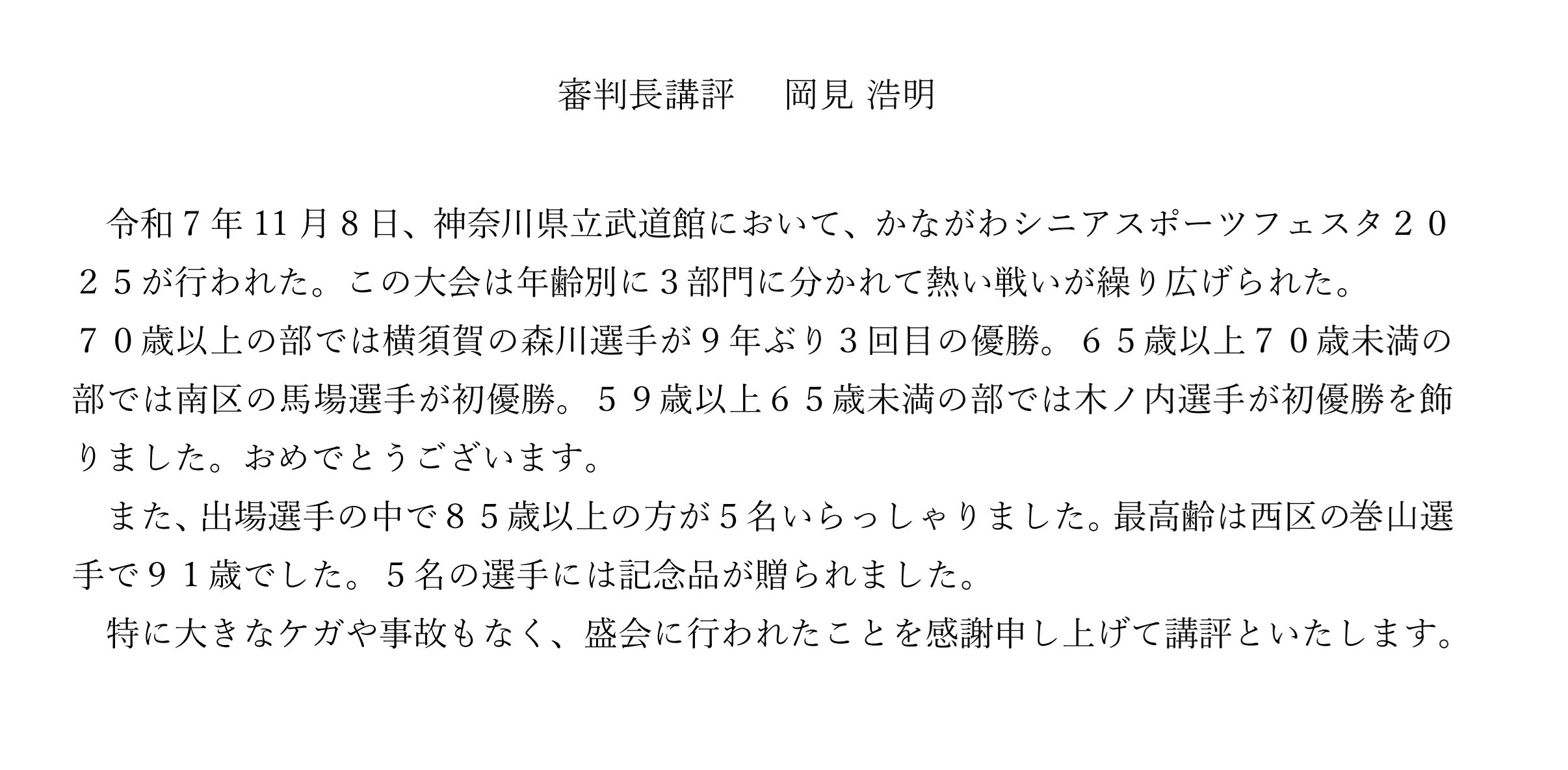 【結果】かながわシニアスポーツフェスタ2025剣道大会 (R7.11.8)