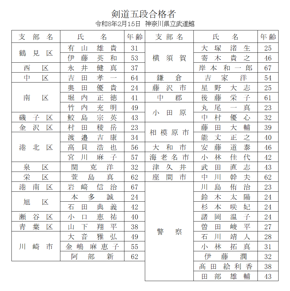 【合格者】剣道五段審査 (R8/2/15)