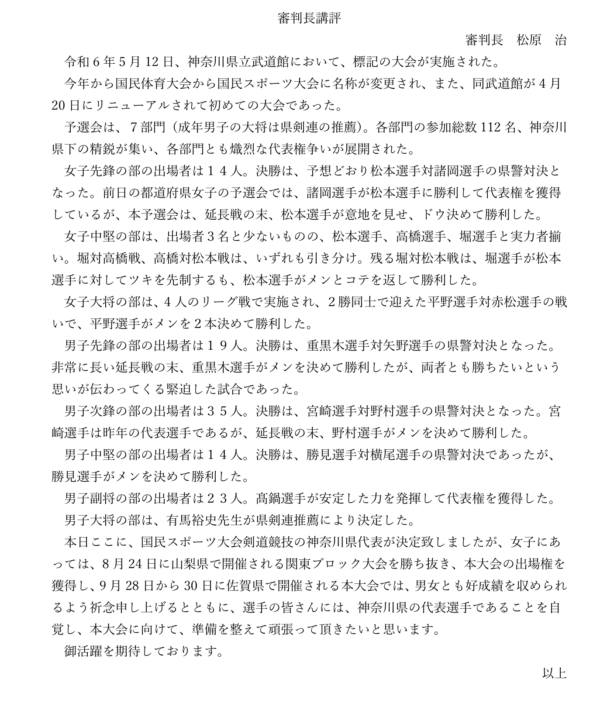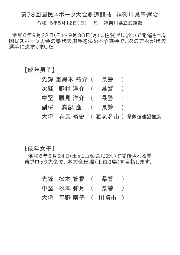 【結果】第78回 国民スポーツ大会剣道競技県予選会(R6.5.12)