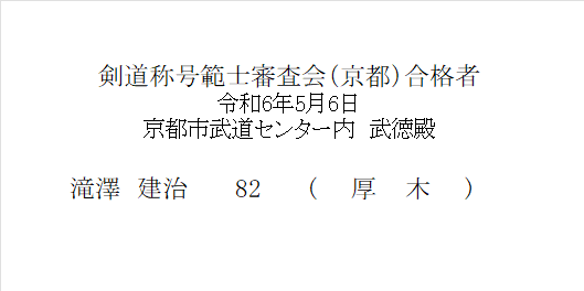 【合格者】剣道称号教士審査会 京都 (R6.5.6)