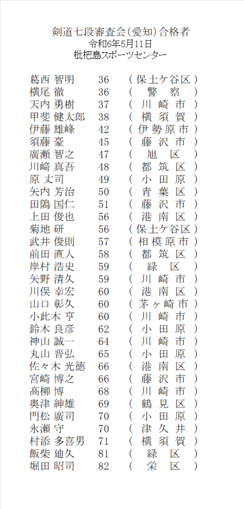 【合格者】剣道七段審査 愛知 (R6.5.11)