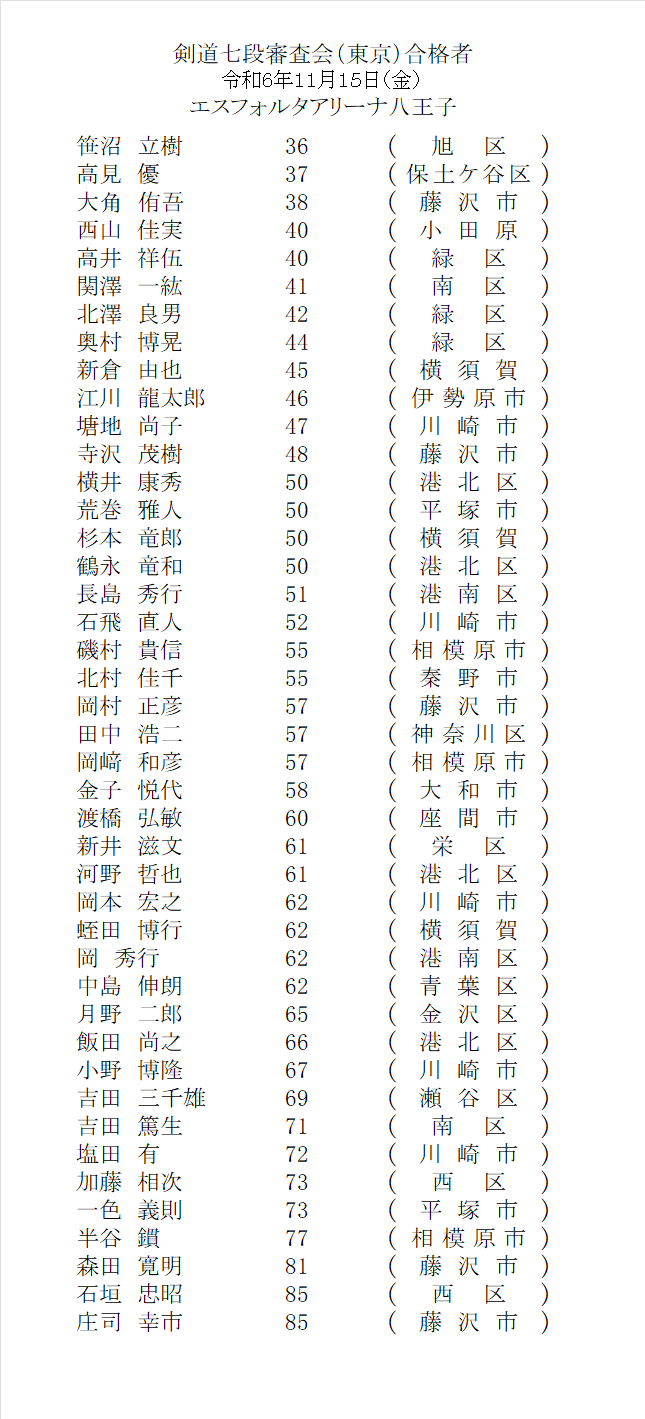 【合格者】剣道七段審査 東京 (R6.11.15)
