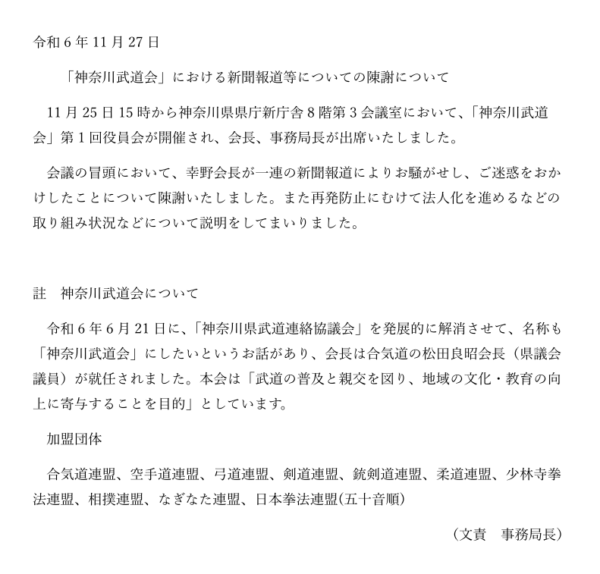 神奈川県剣道連盟 臨時支部長会議 議事録(11月1日開催)