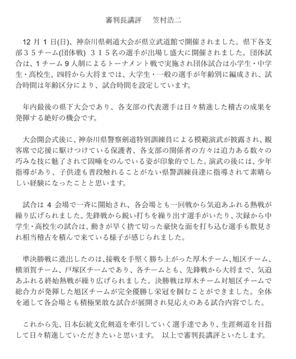 神奈川県剣道連盟 第9回幹部会議 議事録 (11月7日開催)