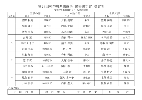 ※記載ミスによる訂正あり【結果】神奈川県剣道祭 (2025.3.2)